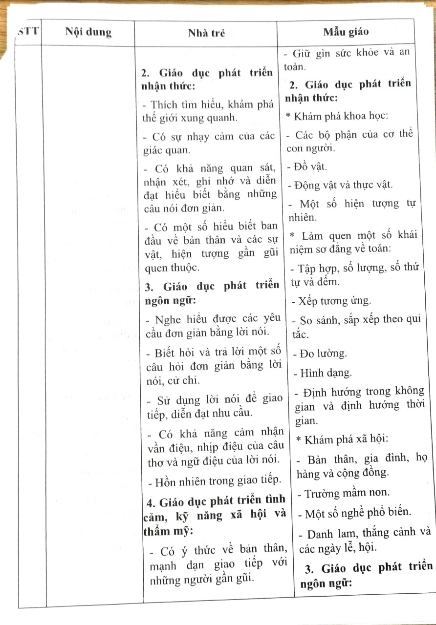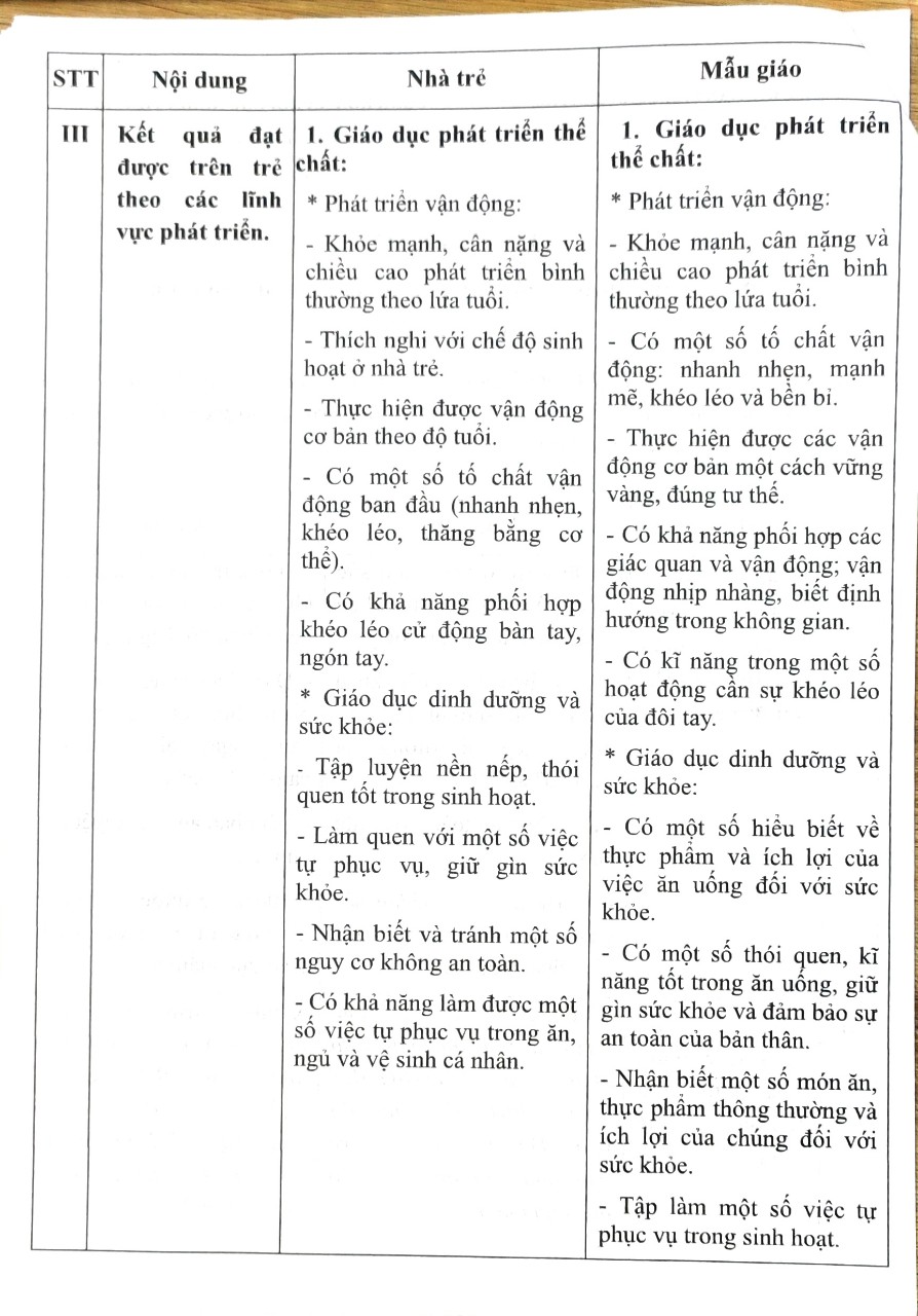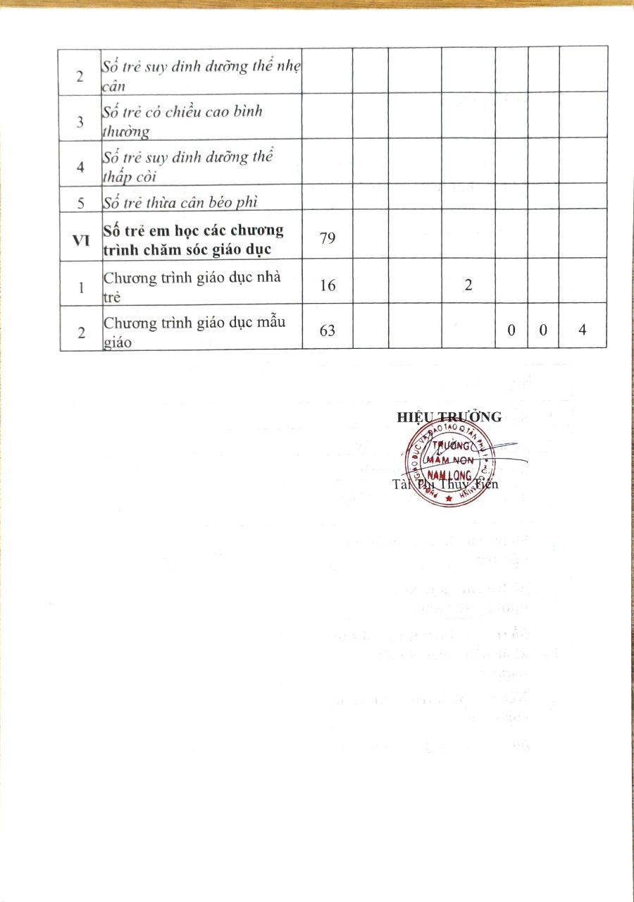 Thông báo: Công khai chất lượng giáo dục mầm non thực tế, Năm học 2023-2024
